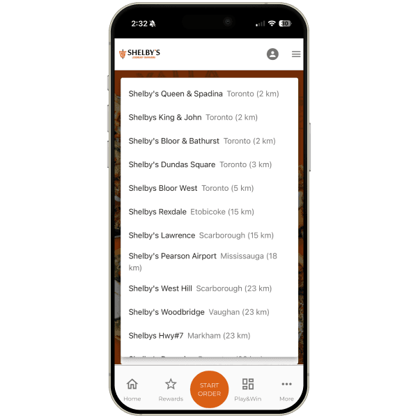 However, the experience is entirely list-based. There is no spatial or visual context to help users understand where they are in relation to nearby Shelby’s locations, making the process more abstract and cognitively demanding.