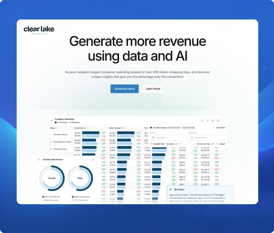 For Clearlake, we built a modern insights platform that helps agencies turn complex consumer spending data into clear, actionable decisions. Every part of the experience was designed to feel fast, intuitive, and immediately useful.