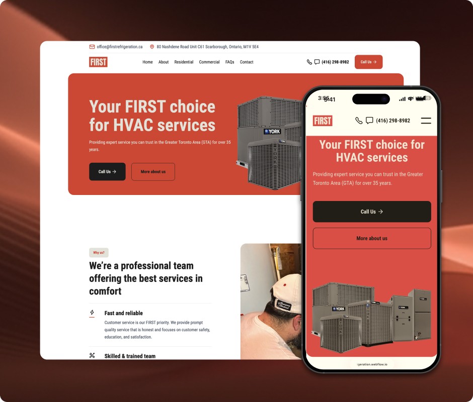 For FIRST HVAC, we created a new brand and high-performing website that turns visitors into customers. Every element, from the logo to the website layout, was designed to look great, load quickly, and drive results.